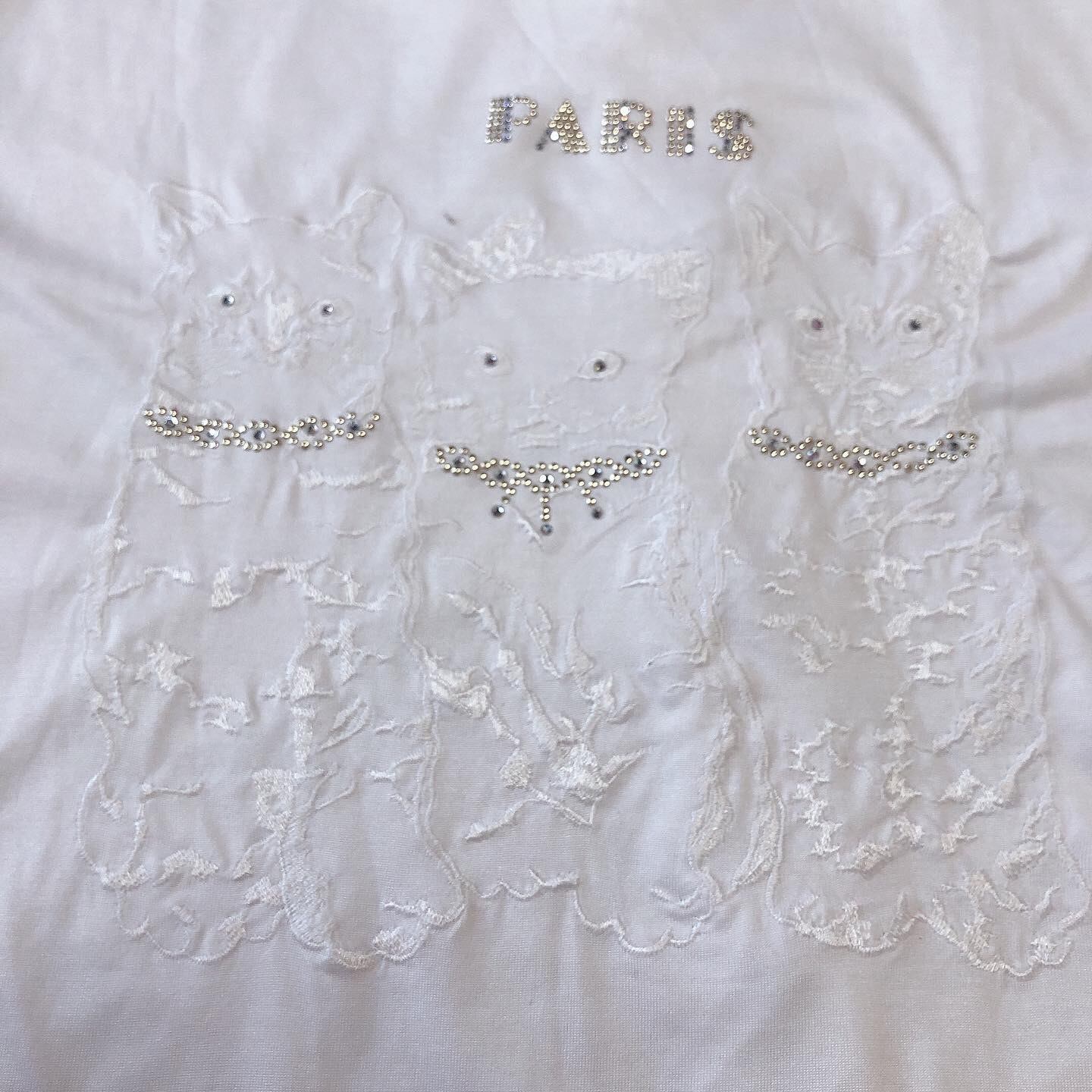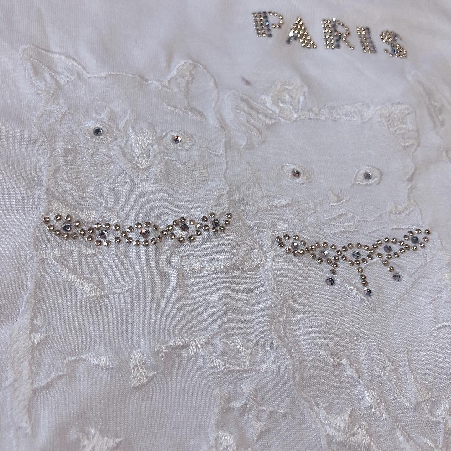 ◯ラインストーン付きネコ刺繍Tシャツ◯