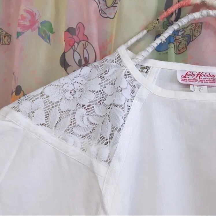138.ホワイトレースブラウス 白 アイボリー 生成 ナチュラル アンティーク