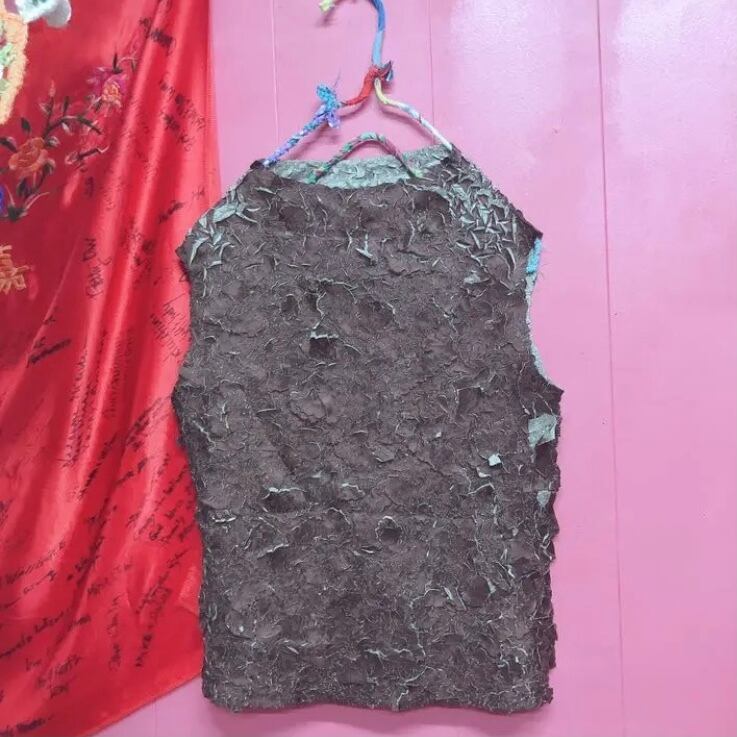 296. ブラウン ハイネック くしゅくしゅノースリーブトップス