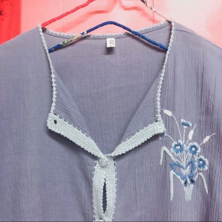 302. お花と蝶々の刺繍入り ニット×コットンブラウス
