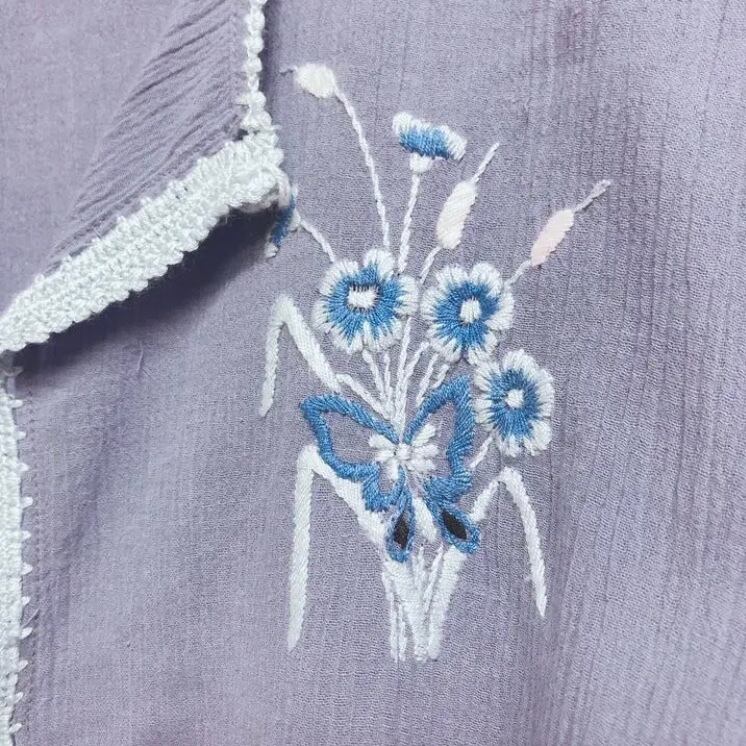 お花と蝶々が丁寧に手刺繍されています。