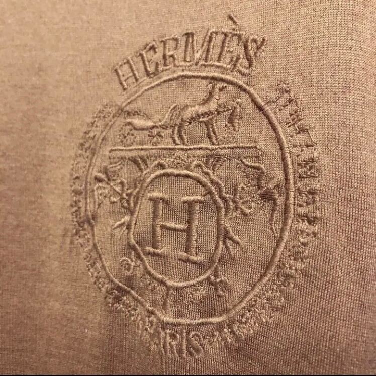311.Hermès エルメス ブラウン 刺繍ロゴTee