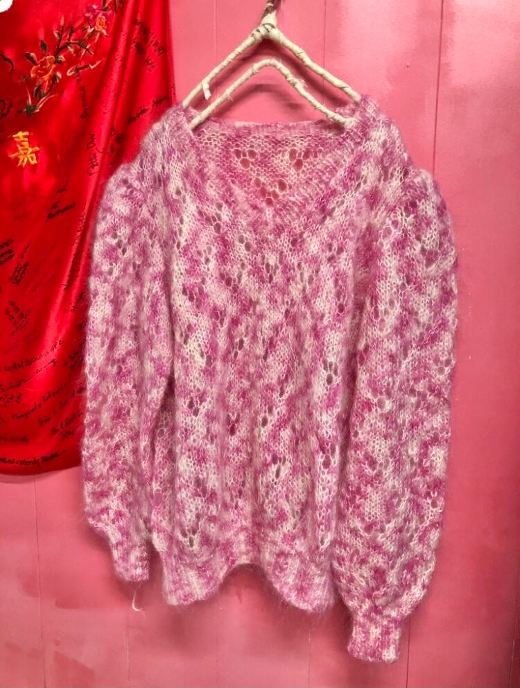 339.ラメ混 モヘア ピンク ロングニット セーター 毛足長め