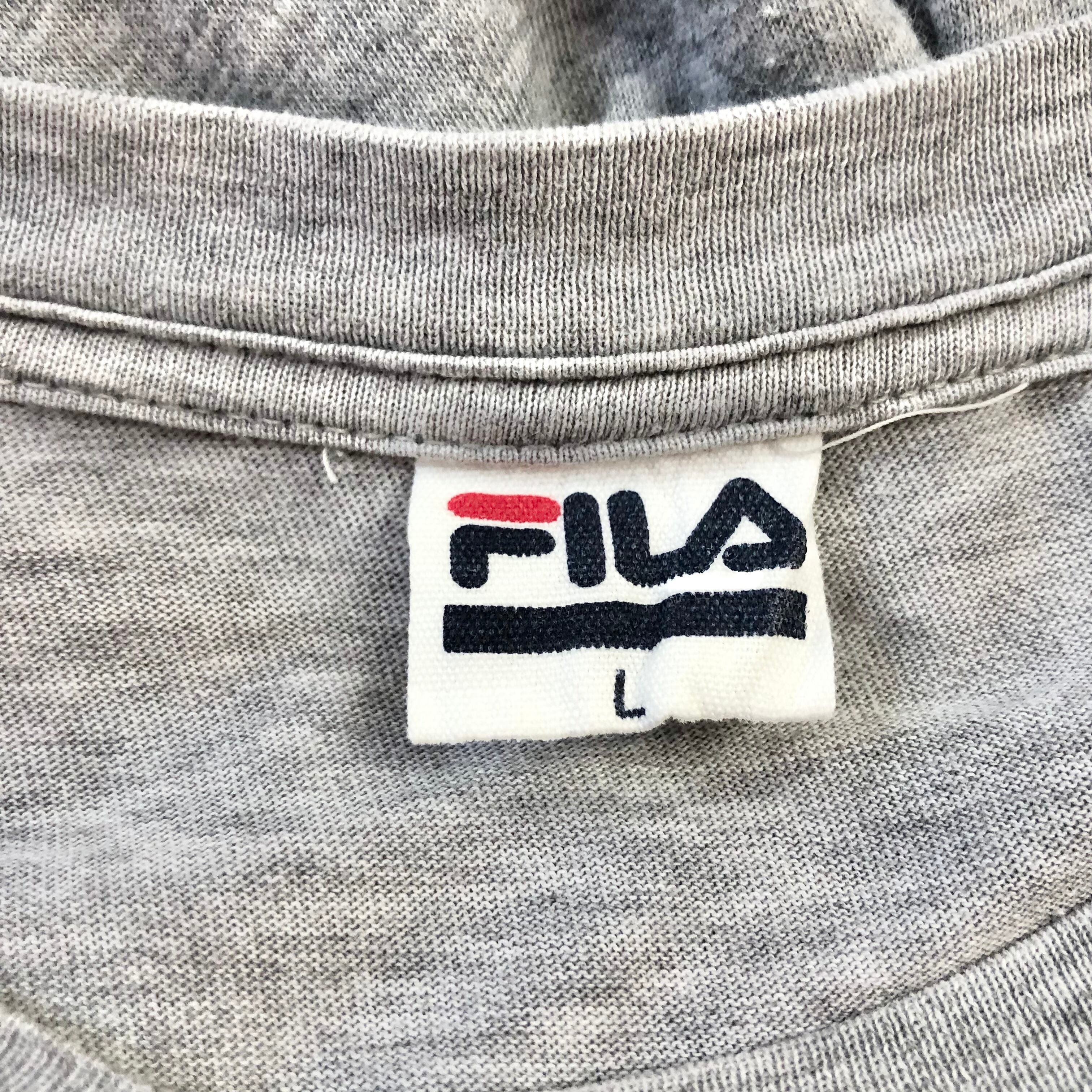 418.FILA ちびロゴ VカットTee グレー 灰色 ごま塩