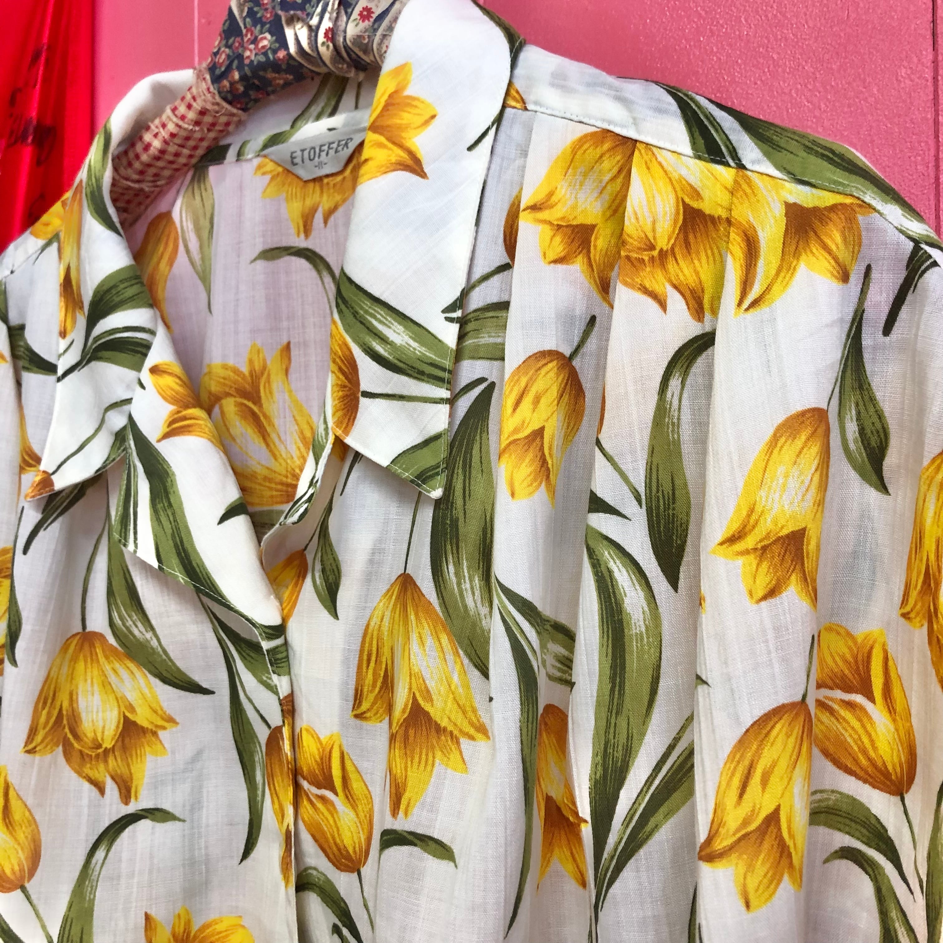 431. チューリップ柄オープンカラーブラウス